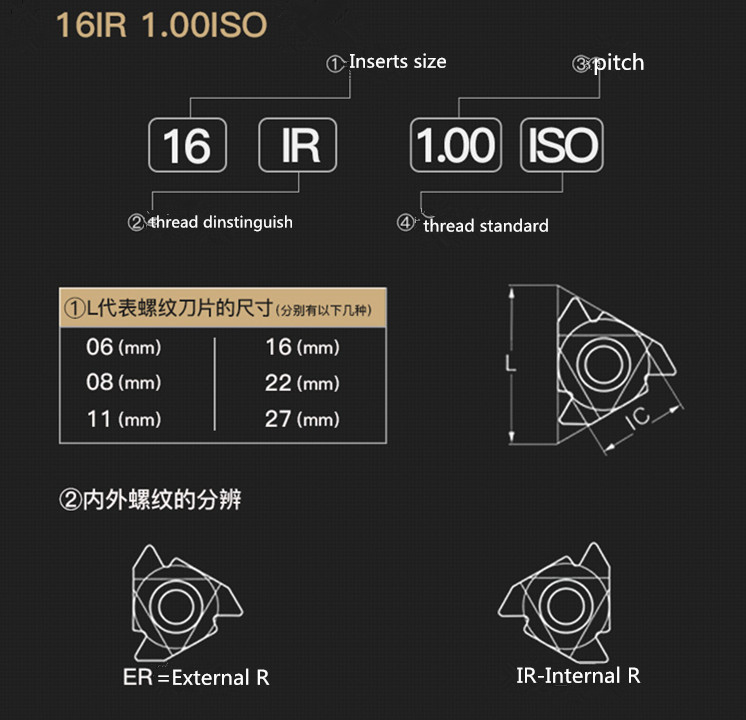 CNC Carbide Inserts 16ER200ISO Ji bo Threading