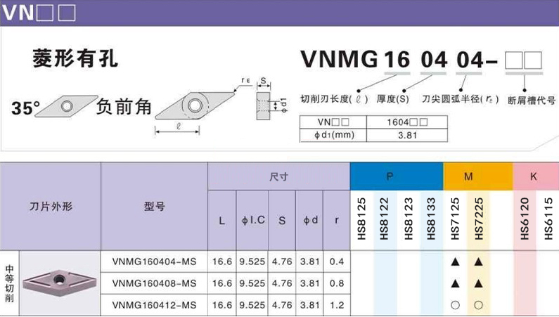 CNC Carbide Inserts VNMG160408-MS HS7225