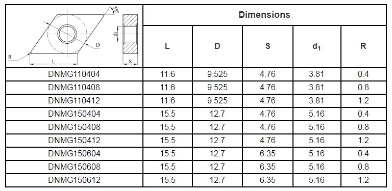 High Efficient Turning Inserts DNMG150608 For Steel and Stainless Steel
